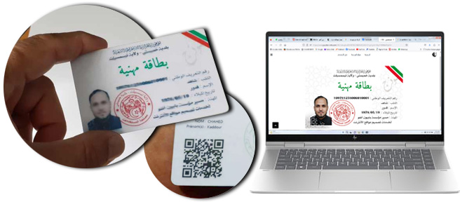 تعرض عليكم «وكالة الاتصالات والإشهار ــ بابيون أنفو» ، تصميم وطباعة بطاقات مهنية وعضوية شخصية لمنتسيبي وعمال وموظفي الهيئة الخاصة بكم، هي بطاقات من مادة PVC مع طباعة على الوجهين بالألوان عالية الجودة، مرمزة بكود حماية سري QR، مرتبط ببوابة إلكترونية آمنة خاصة بمستخدمي الهيئة الإدارية.